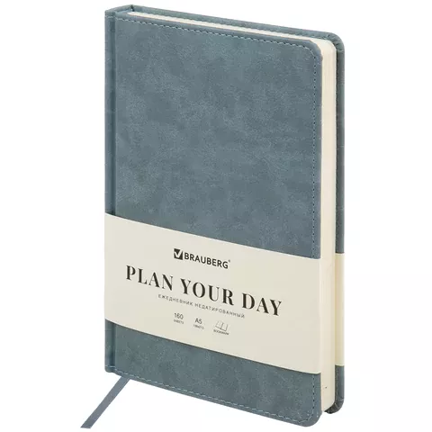 Ежедневник недатированный А5 BRAUBERG "Velvet" резинка, держатель, 160 л., серо-голубой, 116245Артикул: 44599404.40