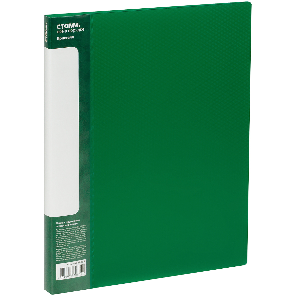 Папка c пружинным скоросшивателем СТАММ "Кристалл" А4, 17мм, 700мкм, пластик, зеленая ММ-30805 (30)Артикул: 44984128.80