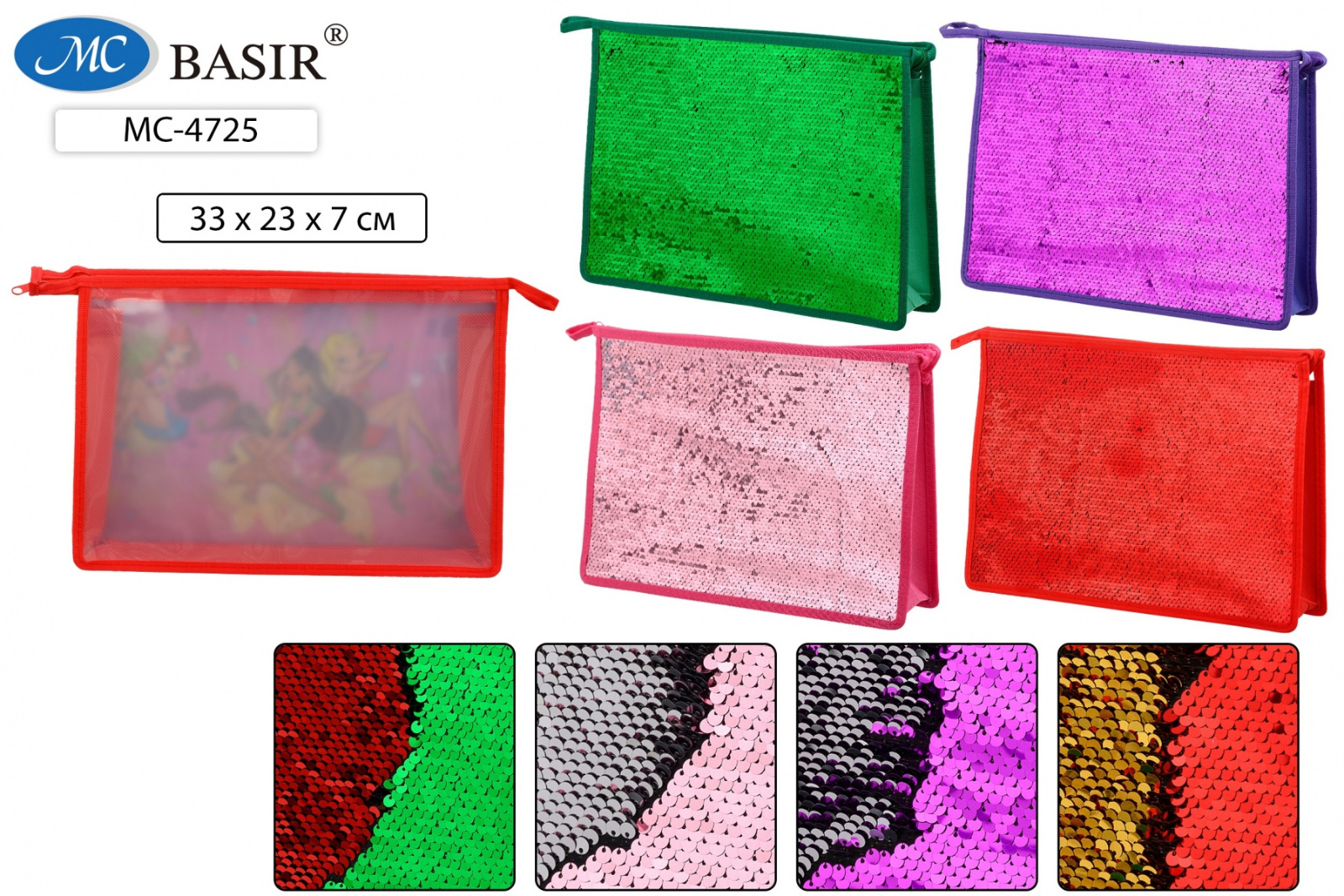 Папка А4 пластик.+паетки на молнии МС-4725 ассортиАртикул: 33500191.60