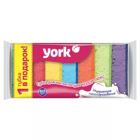 Губки для посуды 10х7х3 см, КОМПЛЕКТ 7 шт., MAXI, поролон с абразивным слоем, COLOR, YORK, 30180Артикул: 44179135.30