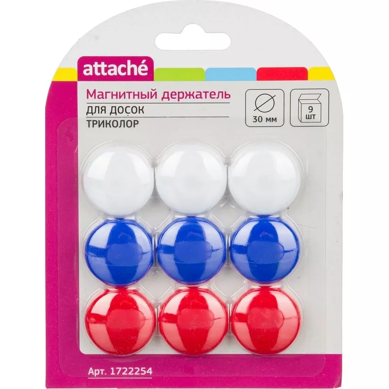 Магниты для досок 3см. (9шт.) Attache Триколор 1722254Артикул: 4498066.80