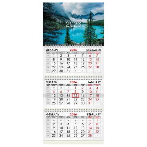 Календарь квартальный на 2026 г., 3 блока, 3 гребня, бегунок, BRAUBERG "Горное озеро" 116822Артикул: 44266165.50