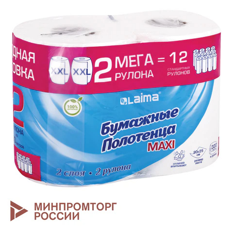 Полотенца бумажные 2шт 2сл. "ЛАЙМА" (2*18м) 126906Артикул: 31609133.50