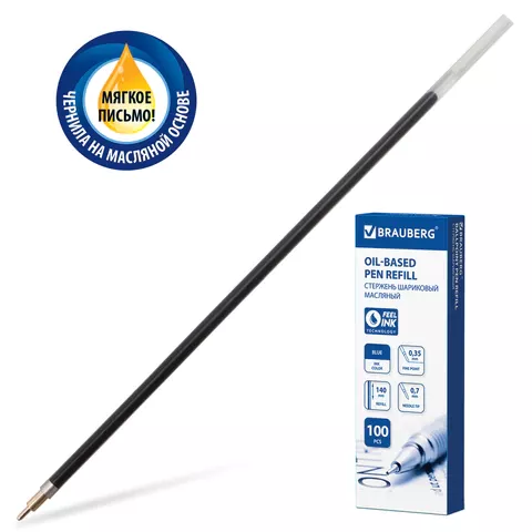 Стержень шариковый масляный BRAUBERG "Oil Base", 140 мм, СИНИЙ, игольчатый 0,7мм., 170221 (100)Артикул: 3038811.50