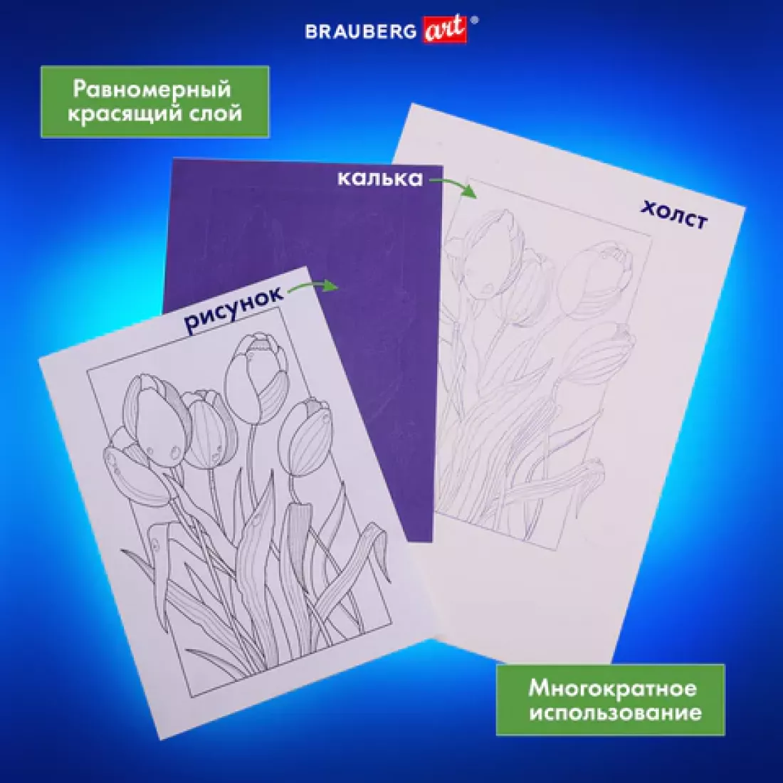 Копировальная бумага BRAUBERG ART "CLASSIC" предназначена для письма вручную, хобби и творчества. Имеет стандартный формат А4 и односторонний красящий слой фиолетового цвета. Не пачкается. Может использоваться многократно. 50 штук в упаковке хватит на долгое время. Творите с радостью вместе с копировальной бумагой BRAUBERG! Оформление заказа займет считанные секунды!