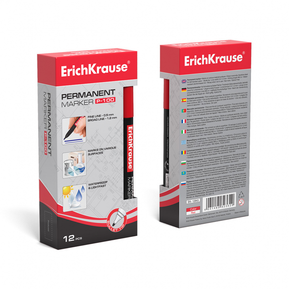 Маркер перманентный ErichKrause "P-100" красный, 1мм., 12843 (12)Артикул: 0692
