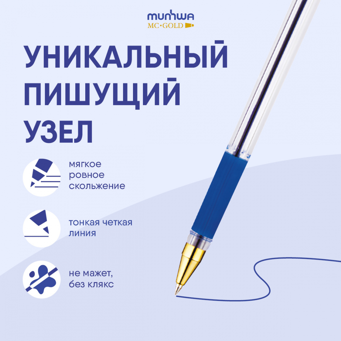 Ручка шариковая MunHwa "MC Gold" 0,5мм., синяя, грип, ВМС-02 (12)