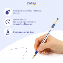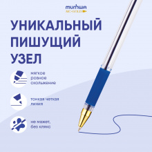 Легендарная шариковая ручка MunHwa MC Gold - одна из самых узнаваемых шариковых ручек. Диаметр пишущего узла составляет 0,5 мм. Толщина линии письма – 0,3 мм, а длина линии письма – 1200 м. Ручки упакованы в картонную коробку по 12 штук. Ручка проработана до мельчайших деталей: прозрачный шестигранный корпус диаметром 8,3 мм отлично сочетается с золотым наконечником и ребристым противоскользящим грипом под синий цвет чернил. Уникальные чернила на масляной основе обеспечивают мягкое, ровное письмо и уверенное скольжение по бумаге. У ручки MunHwa MC Gold есть возможность менять стержень, она многоразовая. Сочетание комфортного письма и безупречного стильного дизайна сделало её абсолютным лидером российского рынка.