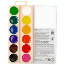 Краски акварельные изготовлены на основе органических пигментов и натурального связующего с добавлением пчелиного мёда. Предназначены для детского творчества и различных живописных работ. Отличаются хорошей прозрачностью, яркостью и чистотой цвета. Цвета: белила, желтый, оранжевый, желтый темный, розовый, изумрудно-зеленый, голубой, черный, коричневый, фиолетовый, светло-зеленый, алый.