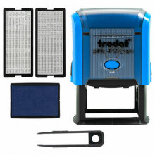 Двухножечная система крепления позволяет надежно закрепить буквы в текстовой плате. Размер текстовой платы 50х30 мм. Модель оснащена кнопками блокировки и кнопочным механизмом замены подушки. В комплект также входят пинцет и 2 кассы символов. TRODAT гарантирует получение чистых и четких оттисков.