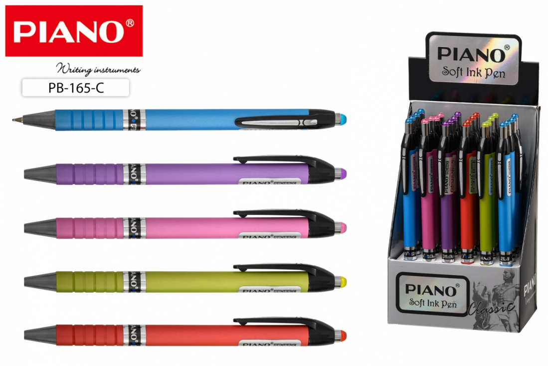 Автоматическая шариковая ручка: "Piano", матовый, цветной корпус /ассорти/, рельефный держатель, цвет чернил-синий. толщина пишущего узла 0,7 mm.