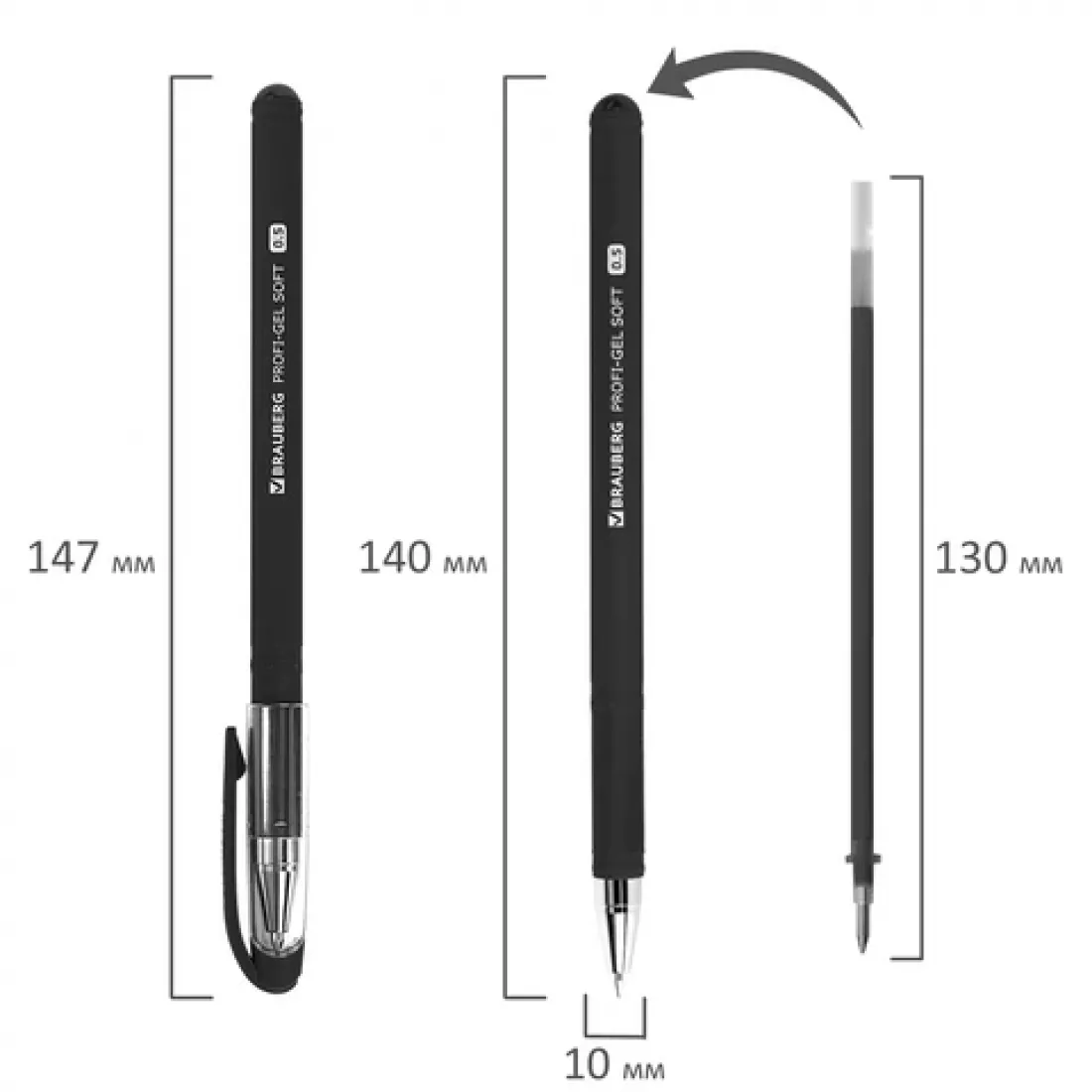 Гелевая ручка BRAUBERG "Profi-Gel SOFT" с покрытием soft-touch приятна на ощупь и не скользит в руке, обеспечивая мягкое и комфортное письмо.