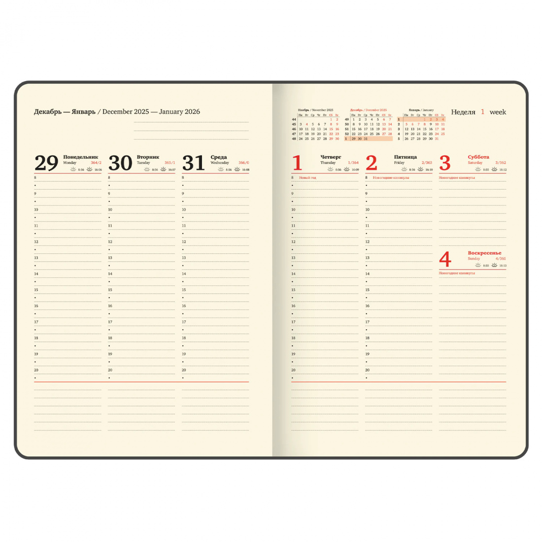 Еженедельник 2026г. А4 BRAUBERG Imperial, под кожу, коричневый, 117156