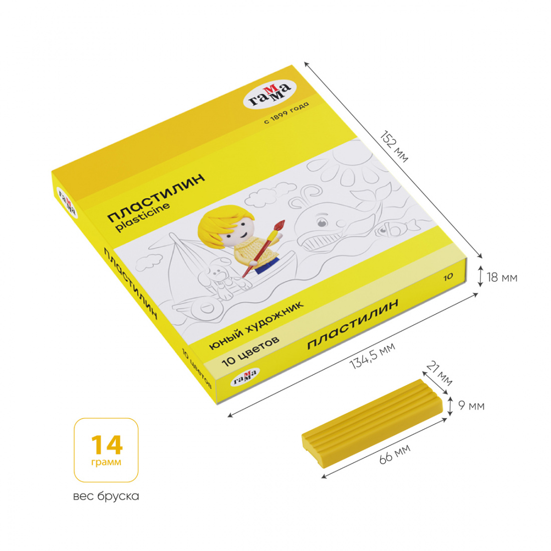 Пластилин 10 цв 140гр. "Юный художник" ГАММА 280044 (20)