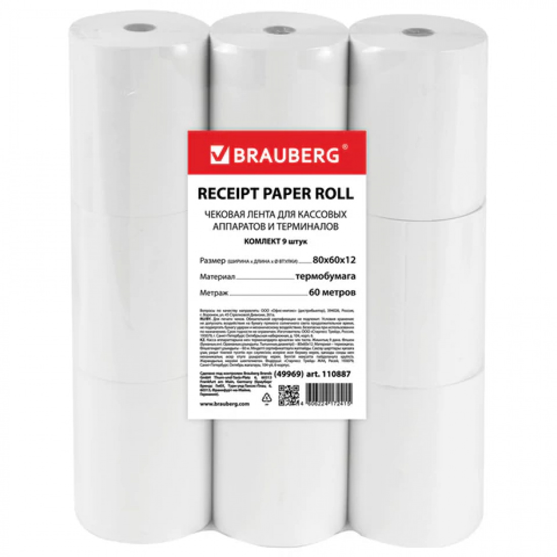 Кассовая лента 80мм (60м вт.12, из т/б) BRAUBERG 110887 (9)