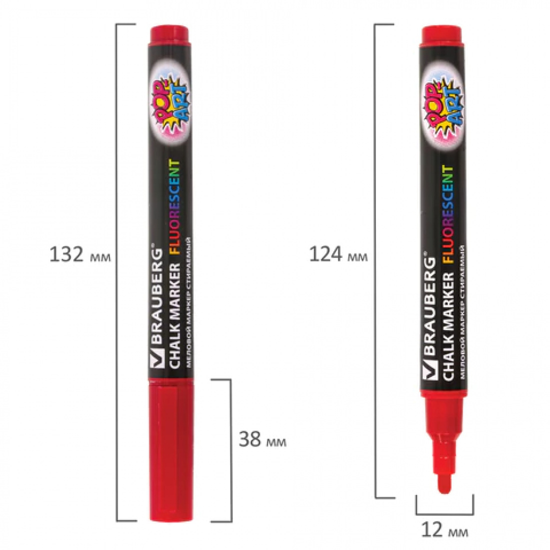 Сухостираемый меловой маркер BRAUBERG "POP-ART" - оригинальный инструмент для оформления различных зон помещений. Идеален для использования на школьных занятиях и детского творчества.
