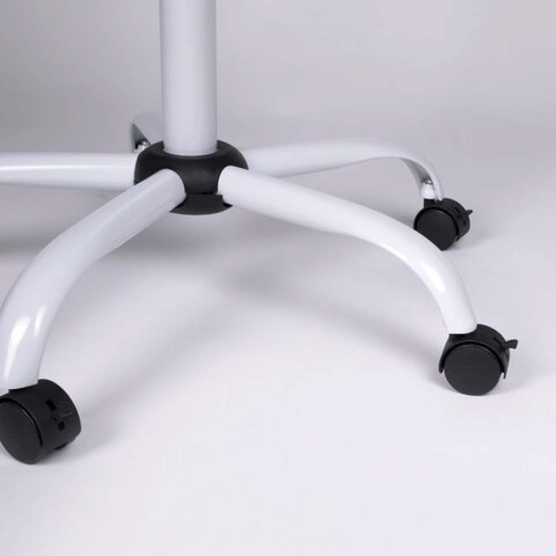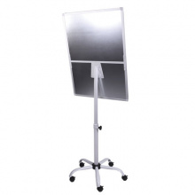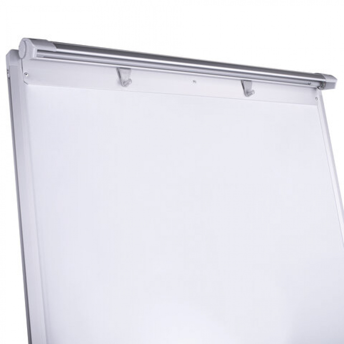 Белое лаковое покрытие предназначено для письма специальными маркерами для белой доски. Металлическая поверхность позволяет размещать объявления при помощи магнитов. Размер доски – 70х100 см. Регулируется по высоте от 170 см до 210 см. Устанавливается на пятилучии. В комплект входит лоток для аксессуаров. Блокнот крепится при помощи двух пластиковых подвижных крючков. Перед началом работы необходимо удалить защитную пленку с рабочей поверхности доски-флипчарта.