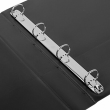Папка стандартного формата А4 вмещает до 250 листов. Изготовлена из плотного картона с покрытием ПВХ толщиной 2 мм. Внутренняя сторона обложки снабжена карманом. Для идентификации содержимого на папке имеется сменный бумажный корешок. Ширина корешка составляет 40 мм. Папка оснащена четырьмя кольцами O-образной формы, которые обеспечивают надежное хранение документов. В неё можно вставить файлы или проколотые дыроколом документы. Допускается влажная обработка поверхности. Каждая папка упакована в индивидуальный пакет.