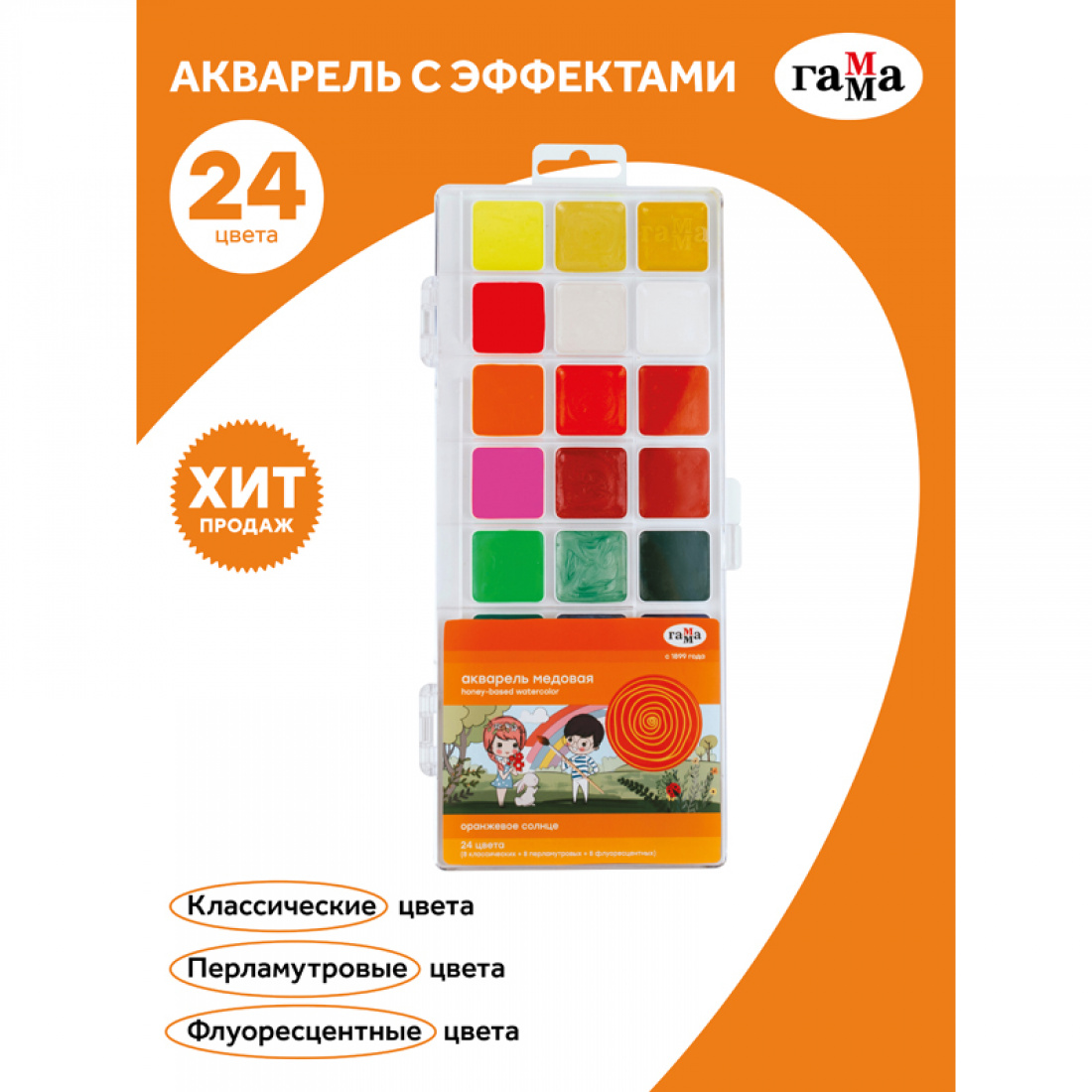 Акварель 24 цв. Гамма "Оранжевое солнце" медовая, 291020209 (18)Артикул: 23441