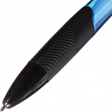 Ручка шариковая автоматическая Attache X-Race выполнена в классическом круглом пластиковом корпусе черного цвета с синими вставками. Стильный дизайн ручки дополняет пластиковый клип, позволяющий плотно закрепить ручку в кармане пиджака или тетради для записей. Прорезиненная манжетка придает ощущение комфорта при письме, способствует надежному захвату пальцев и препятствует выскальзыванию. Стержень длиной 119 мм снабжен игольчатым наконечником, заправлен высококачественными масляными чернилами синего цвета. Диаметр пишущего узла 0.5 мм создает тонкую линию письма, равную 0.35 мм. Ручка обеспечивает легкое и мягкое письмо, яркие и насыщенные линии. Благодаря качественным материалам, используемым при изготовлении, эта ручка станет надежным помощником на долгое время. Ручка обладает возможностью смены стержня.