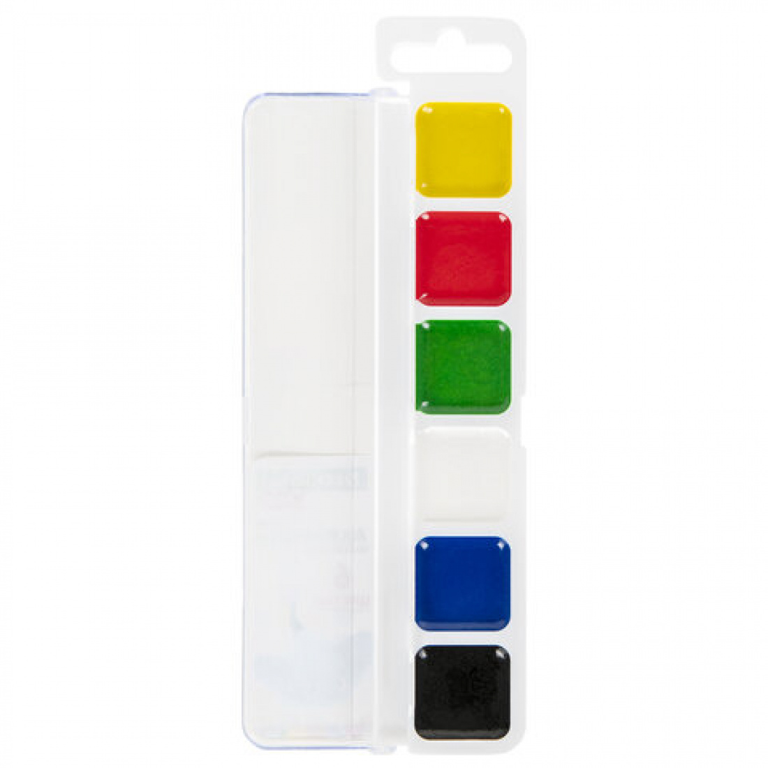 6 ярких насыщенных цветов отлично смешиваются между собой и позволяют создать множество оттенков, обеспечивают однородное окрашивание. Краски быстро высыхают и не портятся со временем. Нетоксичны и безопасны для детей. Выпускаются в пластиковом пенале с европодвесом, прозрачной крышкой, квадратной формой кювет и отделением для кисточки. Упаковка обладает компактными размерами и легким весом.