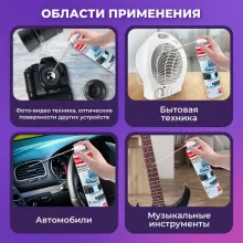 Подходит для очистки поверхностей печатных плат, линз оптических приборов, лабораторного, диагностического и другого деликатного оборудования. Распылительная головка с трубочкой позволяет контролировать направление и силу струи очистителя. Не оставляет следов при распылении.