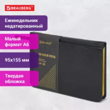 Еженедельник недатированный 95х155 мм, А6, BRAUBERG "Iguana", под кожу, 64л., черный, 114480