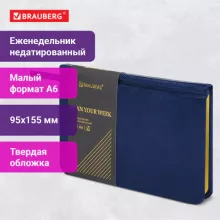 Еженедельник недатированный 95х155 мм, А6, BRAUBERG "Iguana", под кожу, 64л., синий, 114479