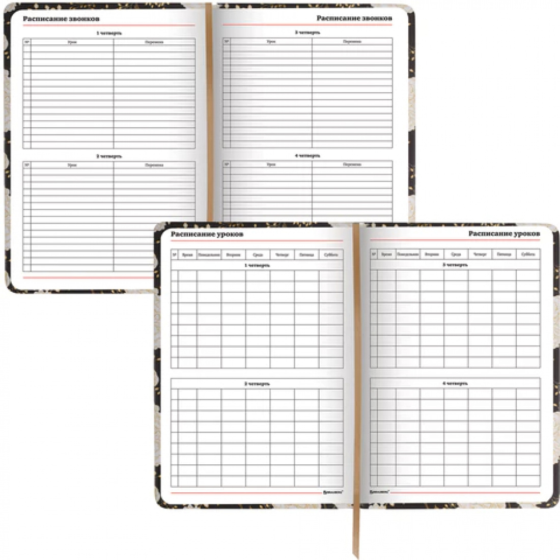 Ежедневник учителя А5 BRAUBERG, под кожу, 144 л., "Цветы на черном", 112707
