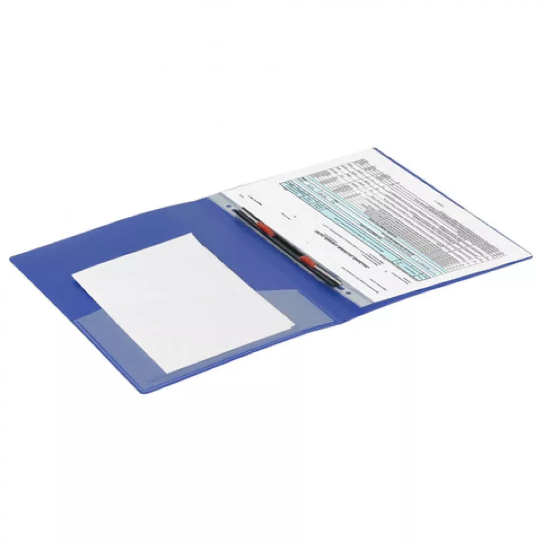 Изготовлена из высококачественного пластика синего цвета толщиной 0,7 мм с оригинальной линейной фактурой. Обеспечивает хранение до 100 листов формата А4. Металлический скоросшиватель с пружинным механизмом обеспечит надежную фиксацию документов. Кроме того, папка снабжена прозрачным внутренним карманом. Для идентификации имеется сменный бумажный корешок. Поставляется в индивидуальной упаковке.