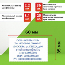 Платформа штампа позволяет набирать, а при необходимости оперативно менять до 7 строк текста и оставляет оттиск размером 60х35 мм синего цвета. Максимальное количество строчных букв в строке – 36, а прописных – 25. Длина строчной буквы составляет около 2,2 мм, а прописной – 3,1 мм. Корпус изготовлен из качественного износоустойчивого пластика. Верхняя часть корпуса выполнена в темно-синем цвете, а нижняя часть – в светло-сером. Надежные фиксаторы, располагающиеся по бокам, позволяют удерживать подвижную часть штампа в статичном положении. В специальное прозрачное окно на верхней части корпуса можно вставить образец текста для его идентификации в процессе использования штампа. Замена подушки не составляет труда. На механизм распространяется пожизненная гарантия. Срок годности сменной подушки составляет 6 лет (дата изготовления указана на упаковке).