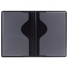 Модель выполнена из мягкого полиуретана темно-бирюзового цвета, украшена гербом Российской Федерации и тисненой надписью "Паспорт". На внутреннем развороте расположены два кармана из прозрачного пластика. Благодаря компактным размерам 97х138 мм удобно всегда носить с собой.