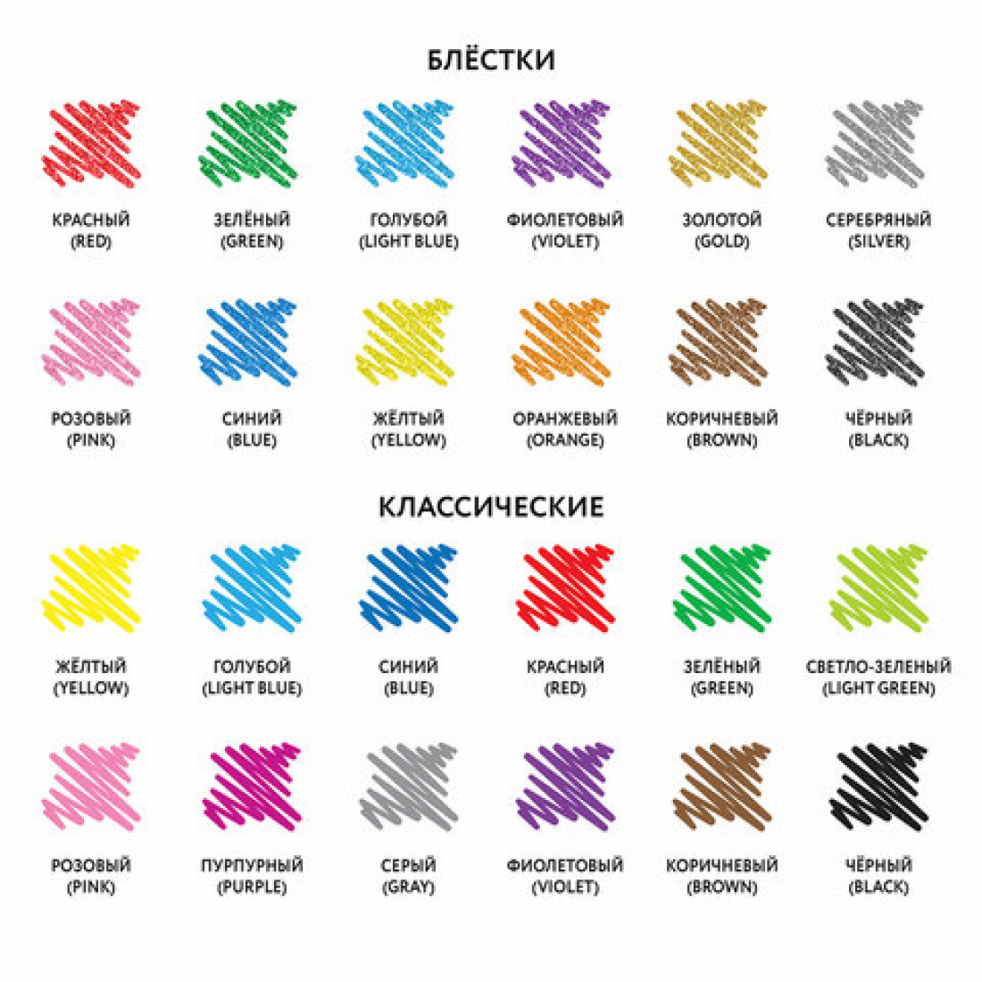 Цвет чернил с блестками: красный, зеленый, голубой, фиолетовый, золотой, серебряный, оранжевый, розовый, черный, коричневый, синий, жёлтый.