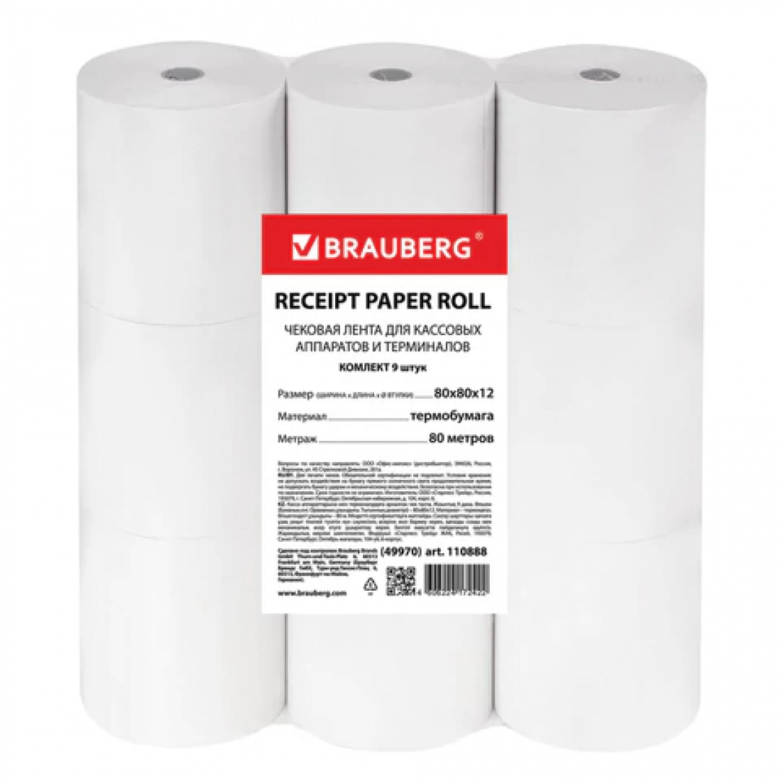 Кассовая лента 80мм (80м вт.12, из т/б) BRAUBERG 110888 (9)