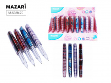 Ручка гелевая , СИНЯЯ, игольчатый пишущий узел 0,5 мм, цветной пластиковый корпус 4 дизайна, сменный стержень 122 мм, ассорти 4 дизайна, картонный дисплей
