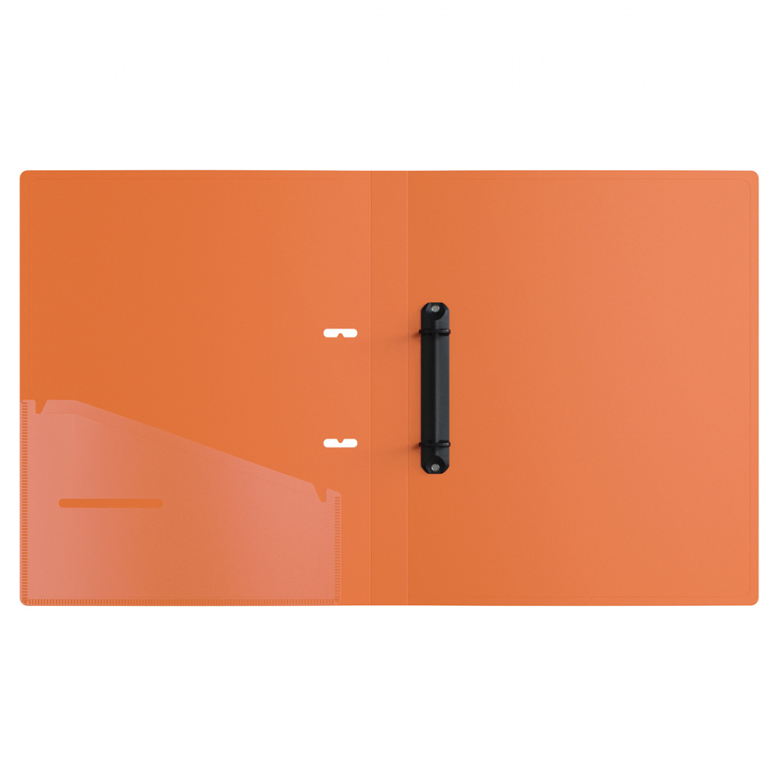 Папка на 2-х D-кольцах Berlingo серии Soft Touch Pro формата А4 - стильный аксессуар для офиса и учёбы. Уникальная технология производства обложки - глубокий эффект софт-тач, тактильно сравнимый с кожаной обложкой. Яркий бирюзовый цвет обложки и контрастный оранжевый цвет внутренней поверхности. Изготовлена из высококачественного полипропилена толщиной 700 мкм. Ширина корешка составляет 25 мм. Ширина папки составляет 250мм. Папка оснащена стильными черными кольцами, которые крепятся на заднюю стенку. Специальная D-форма колец диаметром 20 мм помогает удобно и ровно хранить документы, которые могут быть выровнены по левому краю, благодаря боковой вертикальной стенке кольца. Вместимость папки – 150 листов. Специальные формовые отверстия в обложке служат для надежного защелкивания папки в сложенном виде, предотвращают случайное открытие обложки и замятие документов внутри при хранении и транспортировке. На внутренней стороне обложки папка оснащена плотным прозрачным карманом для удобного хранения мелочей: ручки, заметок, визиток, дисков, флешек и др. Размер папки составляет 310*250*25 мм. Упакована в индивидуальный прозрачный пакет по форме. Папка оснащена съемным стикером c штрих-кодом.