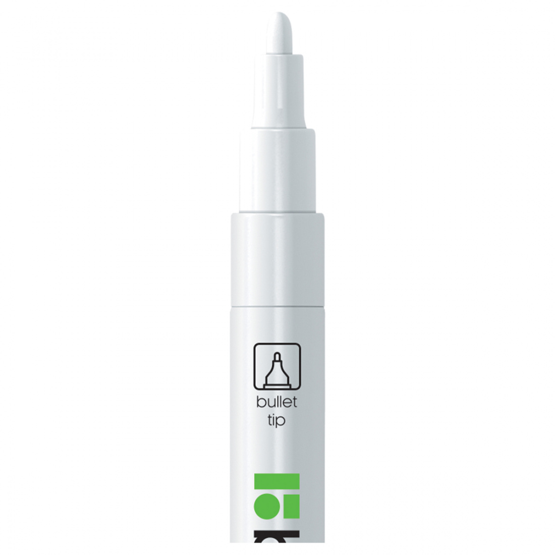 Закруглённый пишущий узел. Ширина линии - 2 мм. Длина непрерывной линии - 300 м. Используется для работы на металлических, деревянных, стеклянных и пластиковых поверхностях. Упакованы в картонный мини-дисплей по 12 штук.