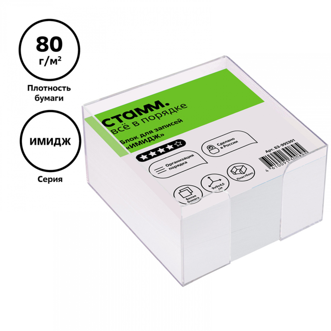 Блок для записей СТАММ "Имидж" 9*9*4,5см., пластиковый бокс, белый Б3-995301 (24)Артикул: 43263