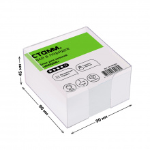 Блок бумаги «СТАММ» Имидж в прозрачном пластиковом боксе подходит для оперативных записей необходимой информации. Размер листа в блоке: 90*90 мм, высота блока – 45 мм. Цвет бумаги блока - белый со стандартом белизны 90-92%. Блок для записей представлен в индивидуальной упаковке в термоусадочной плёнке.