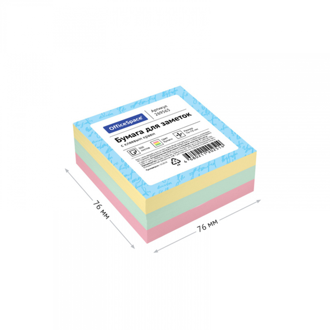 Липкий блок 76*76мм "OfficeSpace" 300л., 3цвета, 269563 (6/96)Артикул: 43306