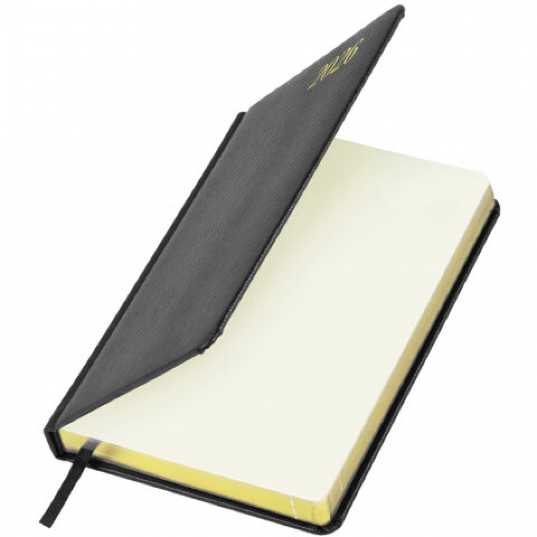 Внутренний блок включает 168 листов тонированной бумаги плотностью 70 г/м2. Каждая страничка имеет перфорированный угол. Благодаря стандартному формату А5 (138х213 мм) ежедневник удобно использовать как в офисе, так и на выездных деловых встречах. Твердая обложка стилизована под кожу рептилии классического черного цвета. Подходит для горячего тиснения. Срез ежедневника фольгирован золотой фольгой, что придает ему особый шарм.