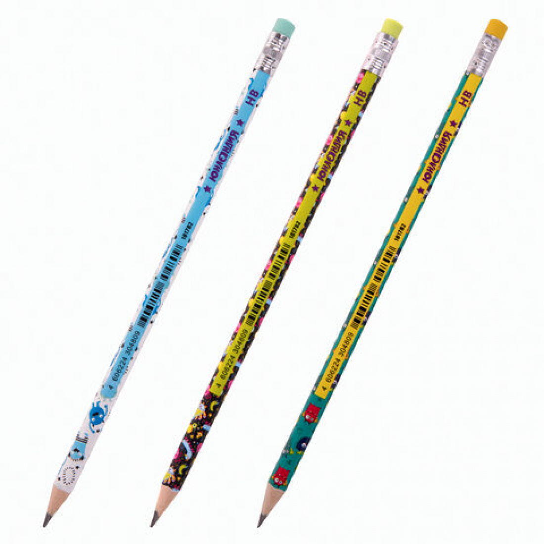 Карандаш чернографитный ЮНЛАНДИЯ "МОНСТРИКИ" HB, с ластиком, корпус ассорти, 181782 (45)Артикул: 43415