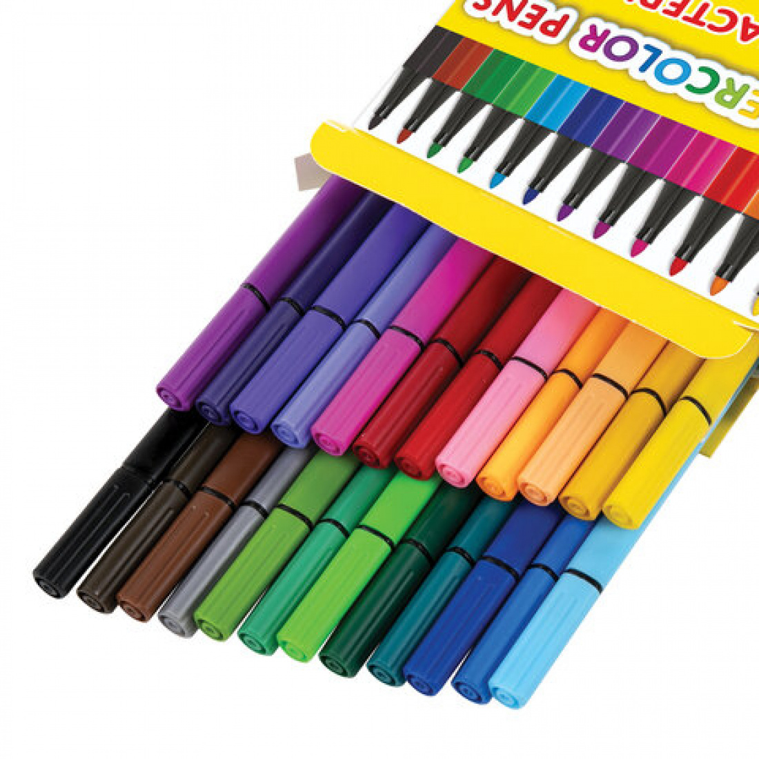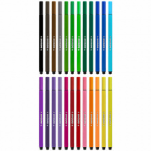 Обладают яркими насыщенными цветами в количестве 24 штук. Удобная трехгранная форма корпуса, длина которого 165 мм, а диаметр - 9 мм. Благодаря толщине линии письма 1-2 мм и диаметру пишущего узла 2,7 мм процесс раскрашивания становится легким. Длина письма составляет 300 м: такого расхода хватит надолго. Фломастеры изготовлены на водной основе, поэтому они безопасны и легко смываются с большинства материалов и кожи. Наконечник, устойчивый к продавливанию, не проваливается внутрь корпуса и не деформируется даже при сильном нажатии. Полипропиленовый корпус значительно продлевает срок службы фломастеров. Колпачок имеет специальные прорези для вентиляции, которые способствуют прохождению воздуха при попадании в дыхательные пути малыша. Рекомендованы для детей от 3-х лет.