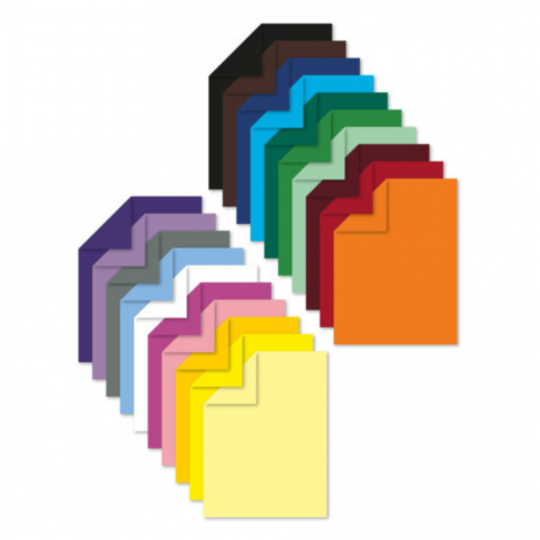 Немелованный двусторонний картон окрашивается непосредственно в процессе изготовления и обладает плотностью 180 г/м2. Может использоваться с трехлетнего возраста. Картон легко режется ножницами, сгибается и клеится. Внутренний блок состоит из 20 листов формата А4 (210х297 мм) и 20 популярных цветов.