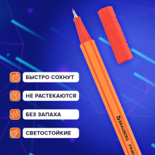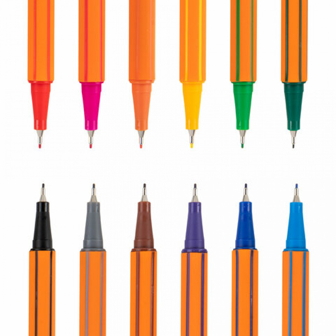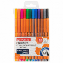 Набор капиллярных ручек BRAUBERG "FINE 040" состоит из 12 ярких цветов: желтый, оранжевый, розовый, красный, светло-зеленый, зеленый, голубой, синий, фиолетовый, коричневый, серый, черный.