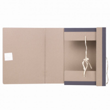 Папка стандартного формата А4 вмещает до 1200 листов. Изготовлена из переплетного картона с покрытием из бумвинила. Ширина корешка составляет 120 мм. На лицевой стороне есть поля для подписывания. Закрывается с помощью 4-х тканевых завязок.
