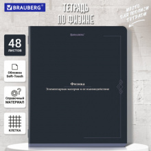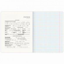 Тетрадь по физике формата А5 (165х205 мм) содержит 48 листов, изготовленных из высококачественной офсетной бумаги плотностью 60 г/м2 и белизной 100%. Листы скреплены скобами. Блок линован в клетку, с красными полями.