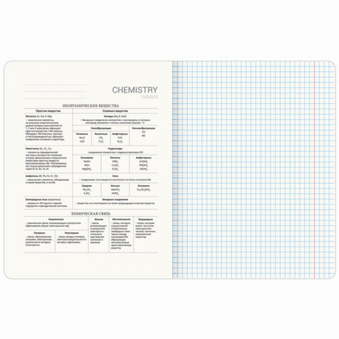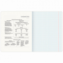 Тетрадь по химии формата А5 (165х205 мм) содержит 48 листов, изготовленных из высококачественной офсетной бумаги плотностью 60 г/м2 и белизной 100%. Листы скреплены скобами. Блок линован в клетку, с красными полями.