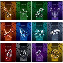 Обложка выполнена из мелованного картона с конгревным тиснением и покрыта твин-лаком. Комплект упакован в короб и термоплёнку."