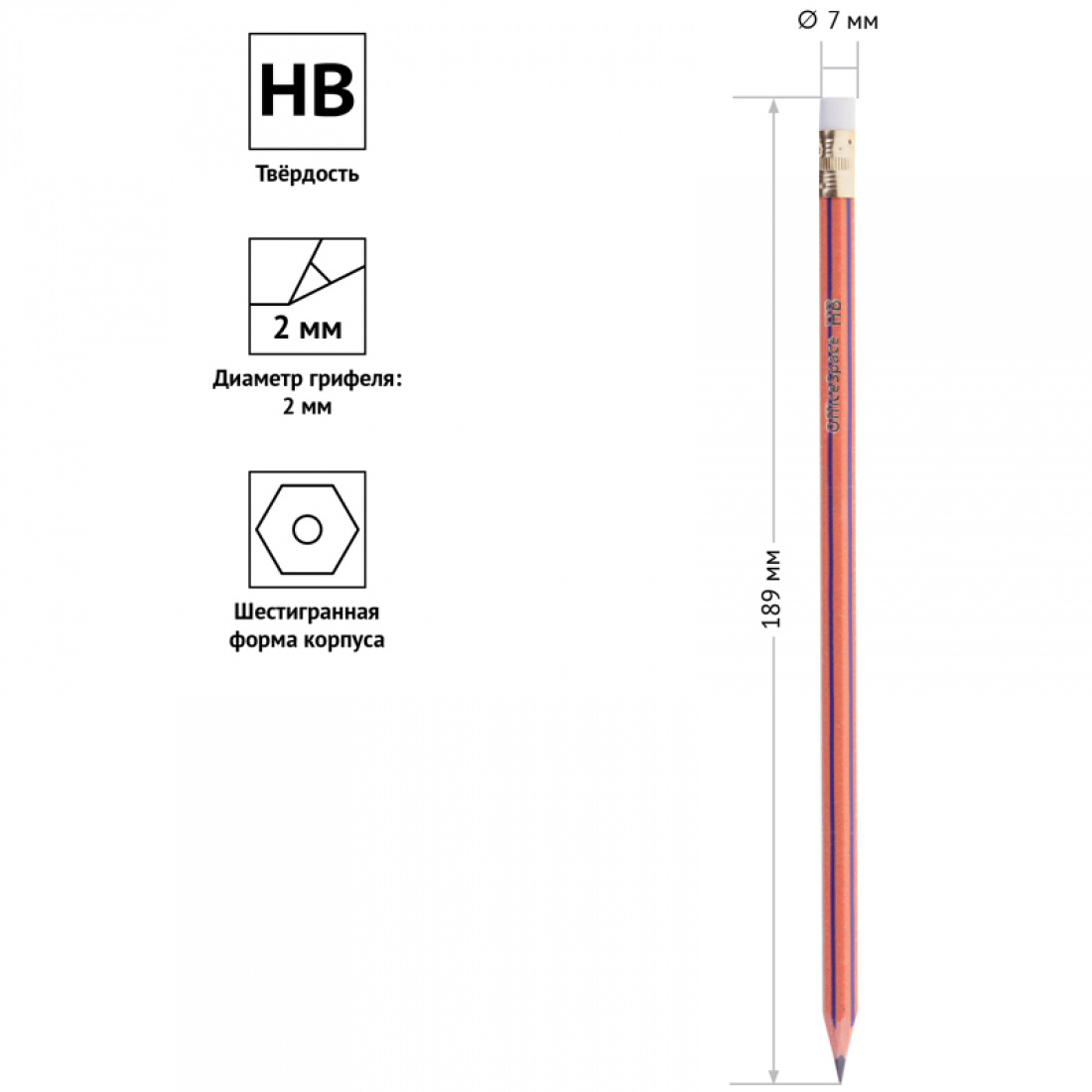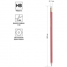 Пластиковый чернографитный карандаш с ластиком. Полосатый корпус. Твердость HB. Заточен.